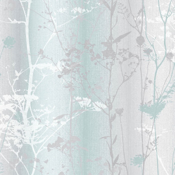 Vliestapete mit hochwertiger Papieroberfläche - Türkis-Grau mit Ombre-Effekt, Silber und Metallic-Türkis Wiesenblumen.