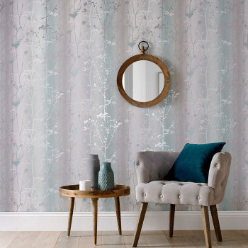 Türkis-graue Tapete, Wiesenblumen 104073, Reclaim, Graham&Brown