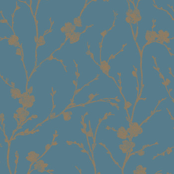 Vliestapete mit hochwertiger Papieroberfläche - Hintergrund in mattem Türkis, Kirschblütenzweige in Bronze.