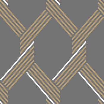 Dunkelgraue Vliestapete mit glatter Papieroberfläche, goldenes geometrisches Muster.