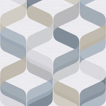 Retro-Vliestapete mit glatter Papieroberfläche - Blau-, Grau- und Beigetöne.