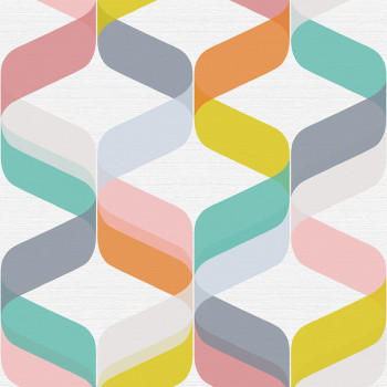 Bunte Retro-Vliestapete mit glatter Papieroberfläche.