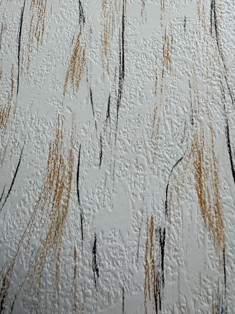 Papiertapete - weißer Hintergrund mit buntem schwarzem und braunem Muster.