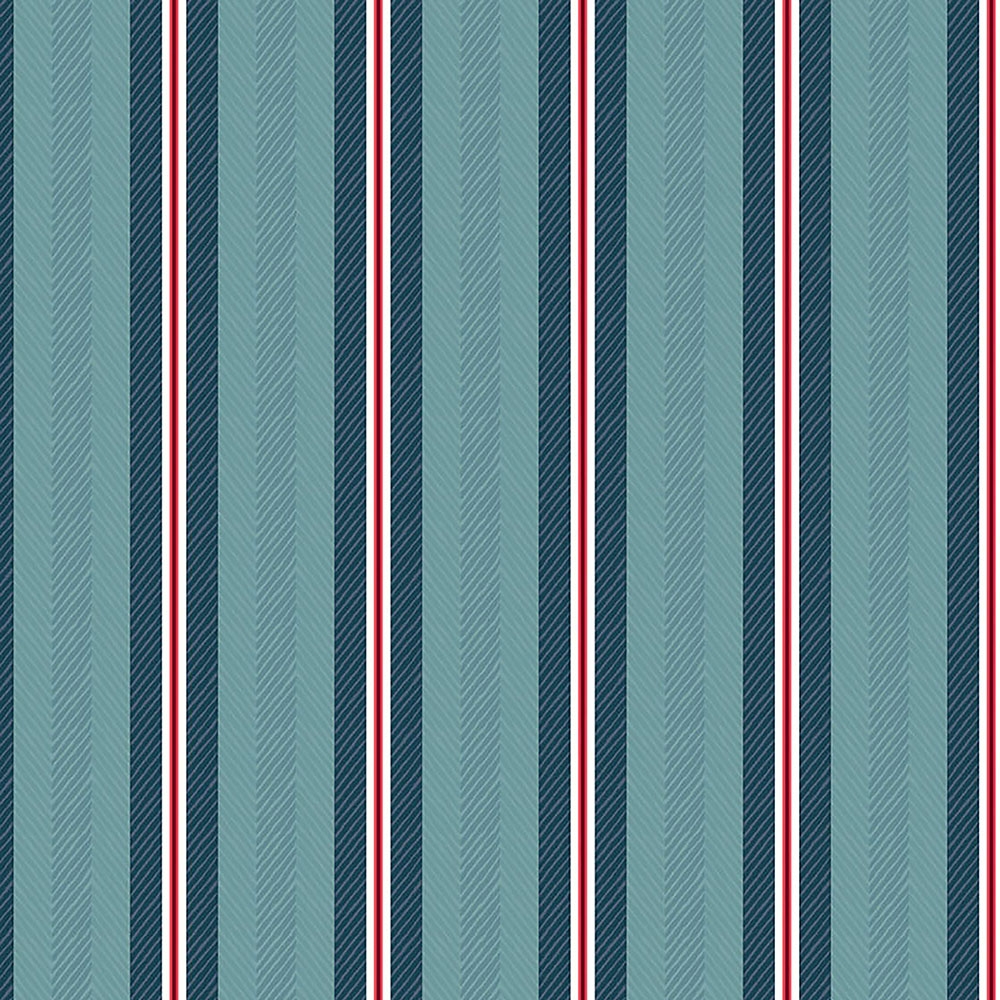 Vliestapete mit dezenter Prägetextur. Streifen in blauen und petrolfarbenen Tönen.