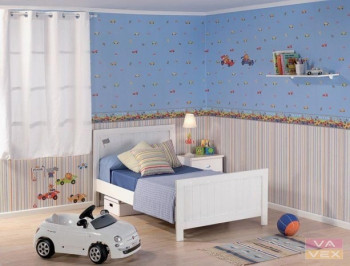 Tauschen Sie die schlichten Wände aus und schaffen Sie ein gemütliches kleines Zimmer, in dem sich Ihre Kinder wohlfühlen. Formelmotive für kleine Rennfahrer. Gelbe Papiertapete.