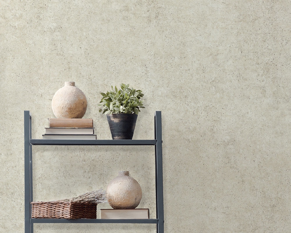 Betondesign in Grau-Beige-Tönen. Abwaschbare Vliestapete mit Vinyloberfläche.
