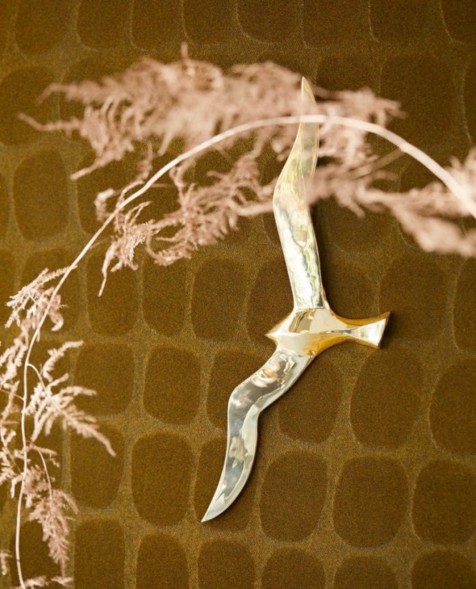 Tapete - Krokodilhaut-Imitat. Plastische Textur aus samtweichem Flock in Goldocker- und Brauntönen. Wir empfehlen, ein Muster anzufordern.