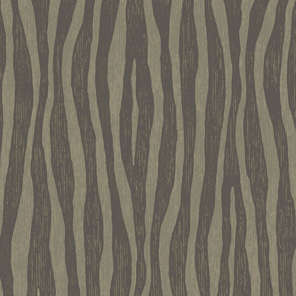 Tapete - Zebrahaut-Imitat. Fein plastische Textu aus abwechselnd glatte, gestromte Khakifarbtönen und gröbere schwarze Streifen.