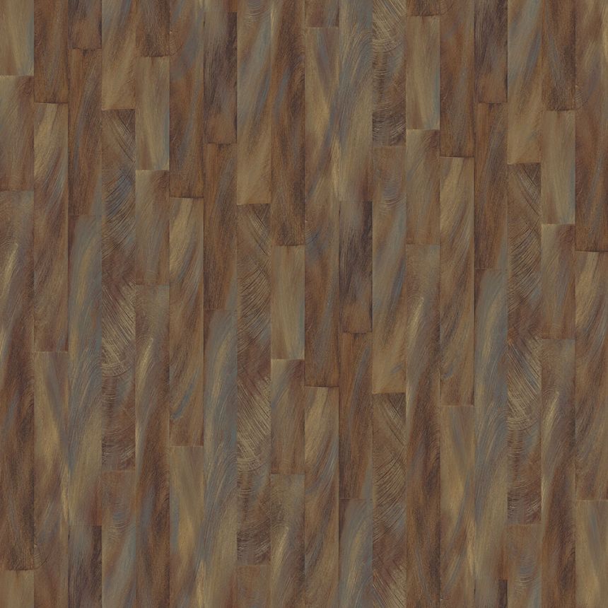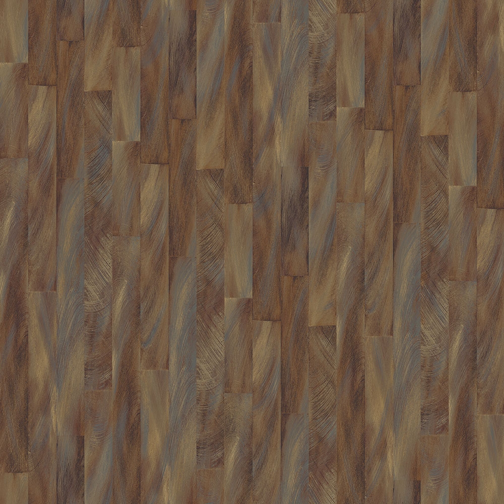 Vliestapete in Holzoptik mit metallischen Braun-, Ocker-Gold- und Silbertönen.