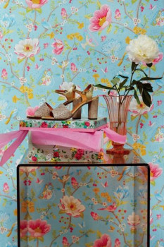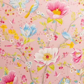 Růžová vliesová tapeta s květinami a ptáčky 341001, Pip, Eijffinger