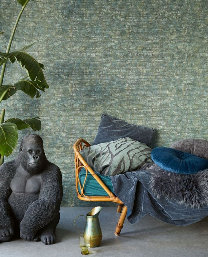 Tapete - Pythonhautimitat. Feinplastisches Design in Grüntönen.