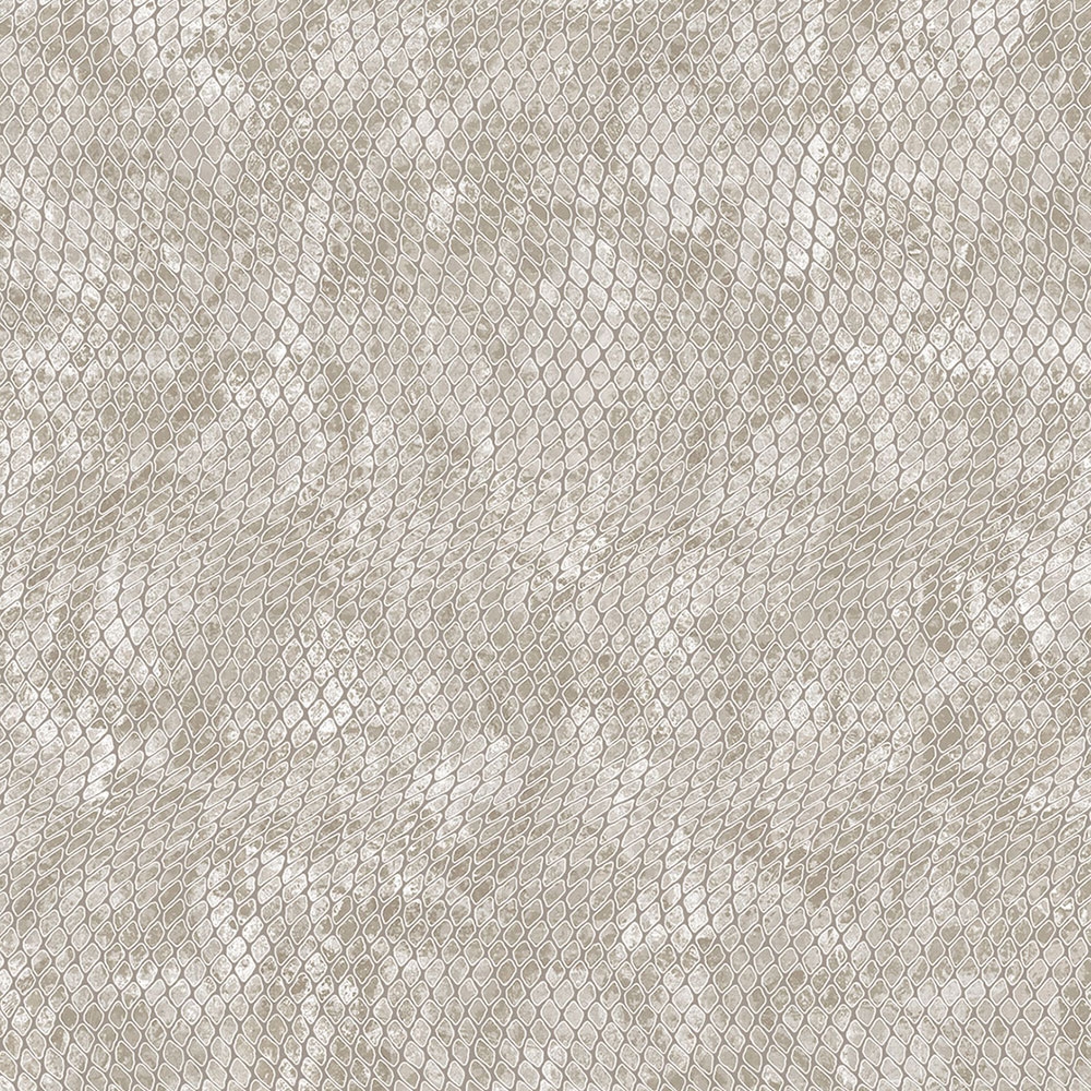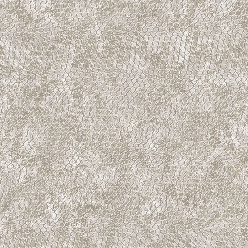 Tapete - Pythonhautimitat. Feinplastisches Design in Grau-Creme-Tönen, stellenweise mit einem Hauch von Silber.