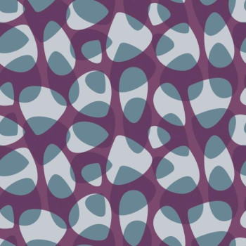 Ein Muster aus Steinen in Grau und Blau auf einer dunkelvioletten Vliestapete.