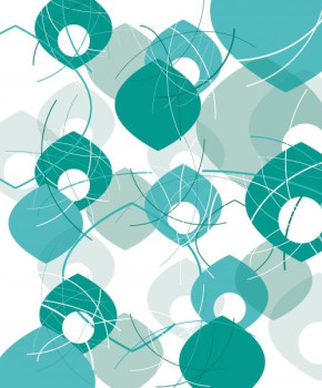 Motive in Türkis und Grün auf weißer Vliestapete.