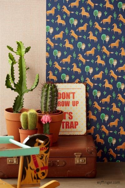 Dětská tapeta vliesová - koníci, kaktusy a stromy 354101, Tout Petit, Eijffinger