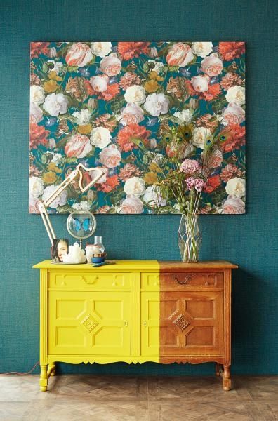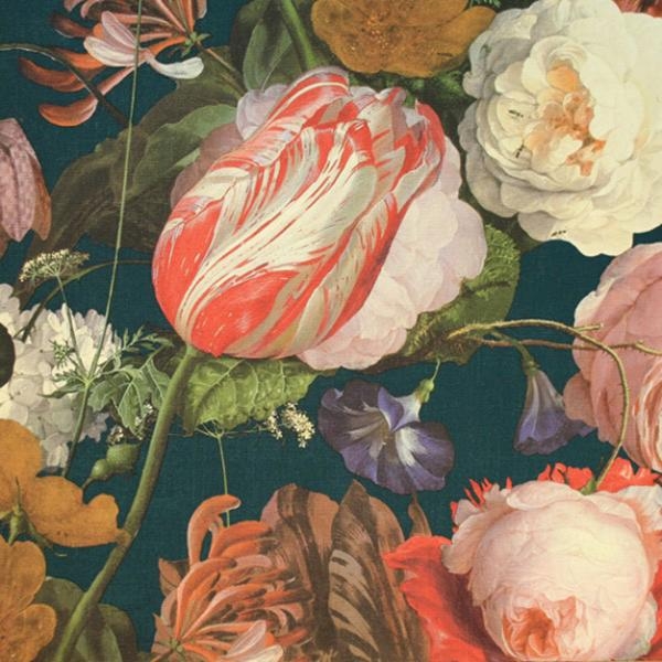 Wie von den Leinwänden der alten Meister. Ein buntes Blumenmuster auf dunkelgrünem Hintergrund.