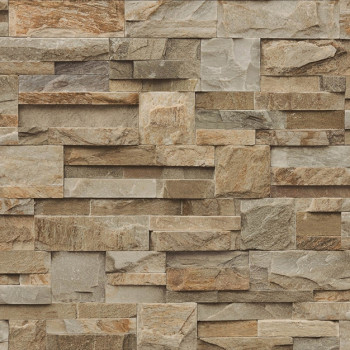 Stein verbessert das Gesamtdesign Ihres Interieurs und schafft eine sehr angenehme Atmosphäre. Imitation einer braungrauen Steinverkleidung. Vliestapete mit Vinyloberfläche.