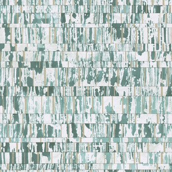 Geometrisches Muster in Grün und Türkis auf Vliestapete.