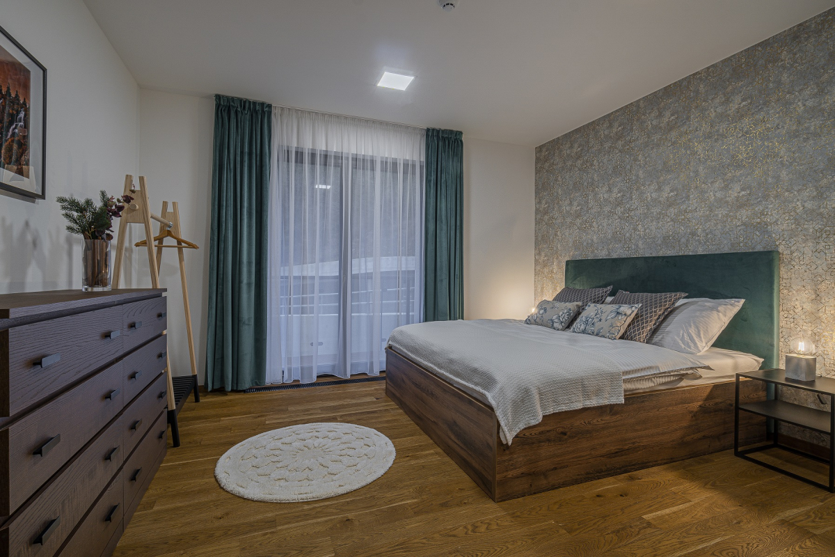Das Schlafzimmer wurde von der geschickten Dáša Laušmannová von Rossy Design entworfen und realisiert.
